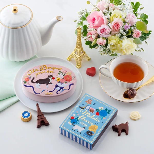 猫とお茶会をテーマにした華やかなピンク色のパッケージが可愛いギフトに込められているのは「Paris est un doux rêve パリは甘い夢」の物語。