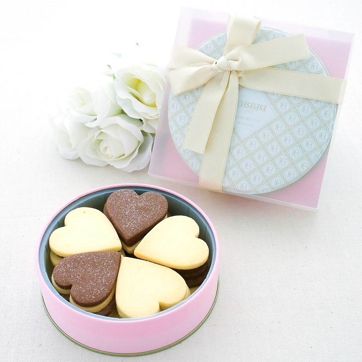 米粉を使用したハート型のクッキーで、バニラとココアの2種類の味が楽しめます。