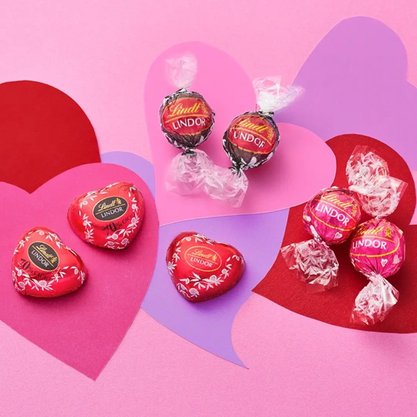 リンドール(ハート 5個、バレンタイン 5個、ミルク 6個、ダーク 5個、ヘーゼルナッツ 5個、ホワイト 6個、ストロベリー 6個、抹茶 6個、ソルテッドキャラメル 5個、ダブルチョコレート 5個)