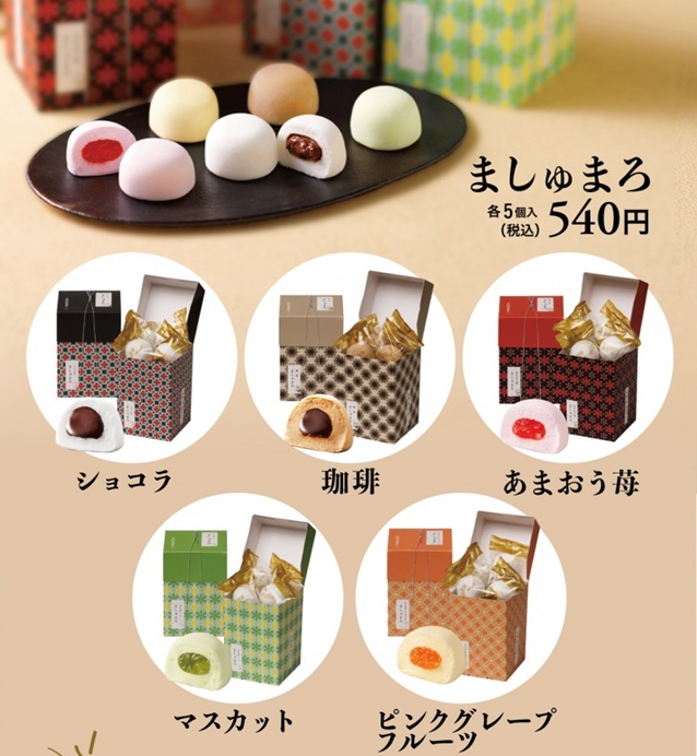 フレーバーはショコラ、珈琲、あまおう苺、マスカット、ピンクグレープフルーツの5種類です。